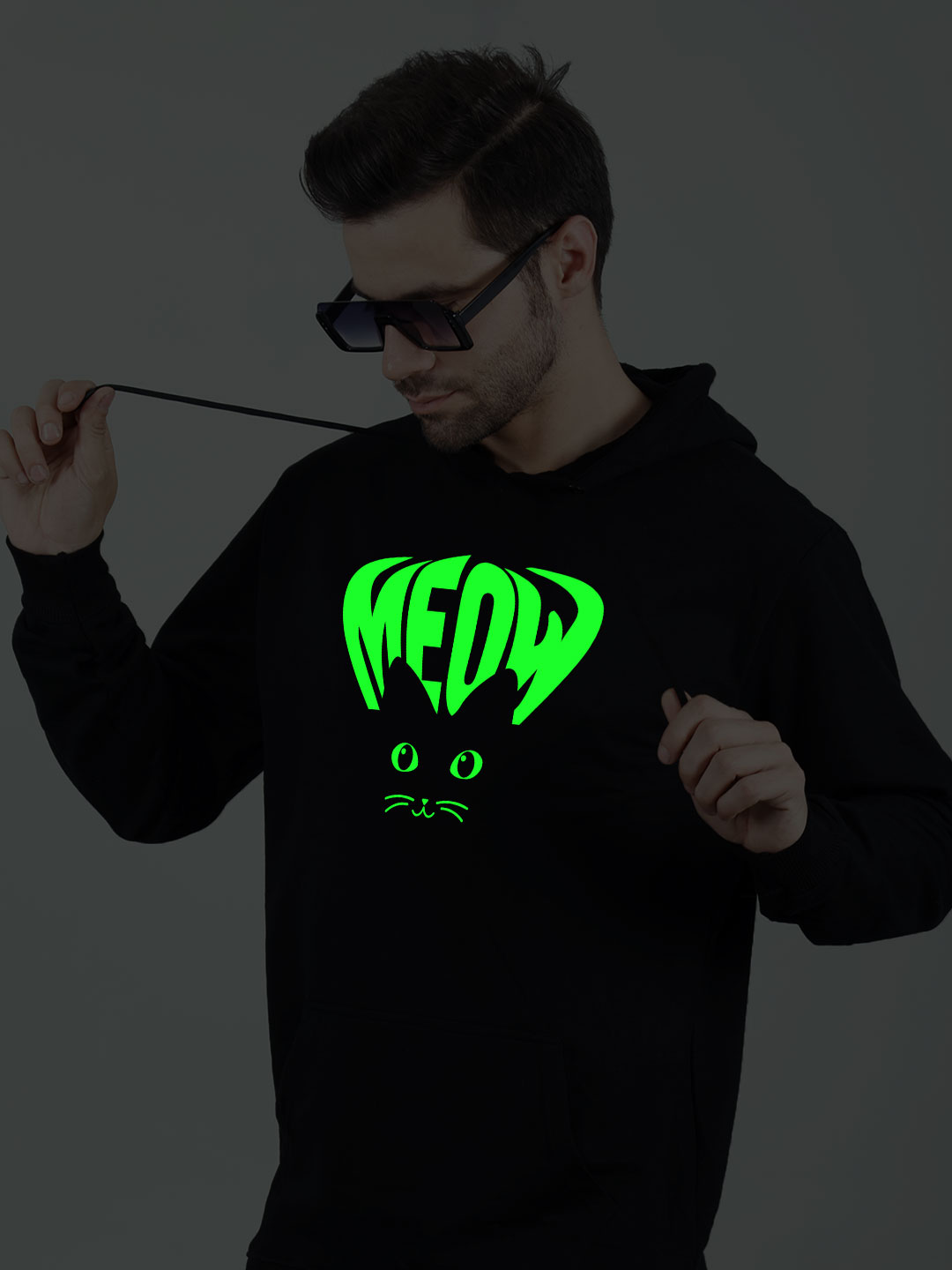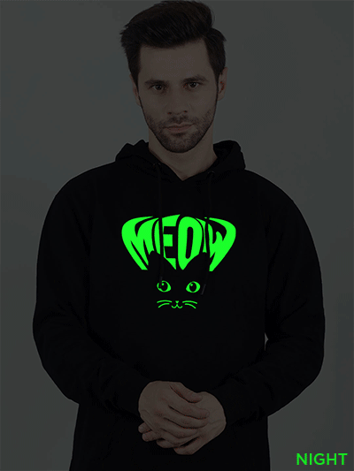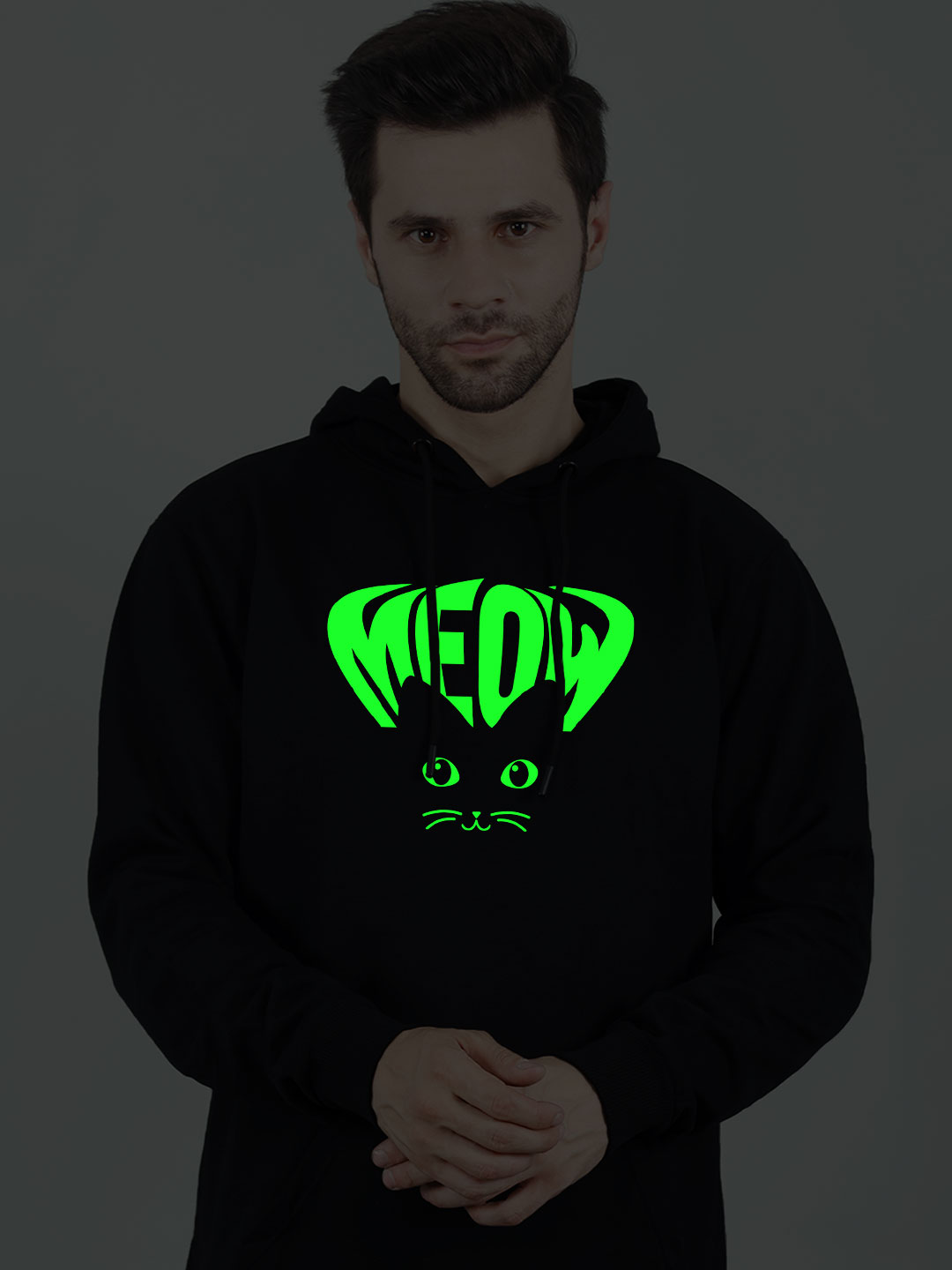 This Hoodie Print absorbs light during the day and emits it at night. The print on the Hoodie will also charge in sunlight or Tubelight and glow in the dark. The duration of the glow depends on the amount of light absorbed by the print