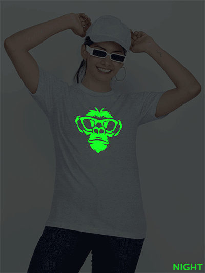 This T-shirt Print absorbs light during the day and emits it at night. The print on the T-shirt will also charge in sunlight or Tubelight and glow in the dark. The duration of the glow depends on the amount of light absorbed by the print