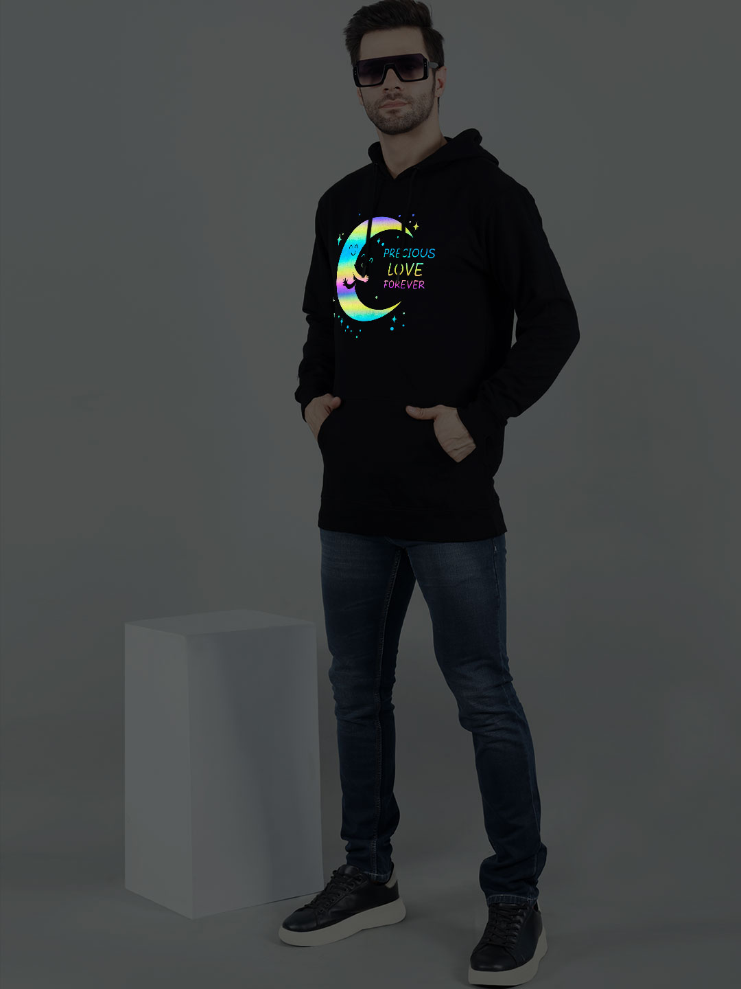 Moon Loves Night Rainbow Reflective Man Black Hoodie