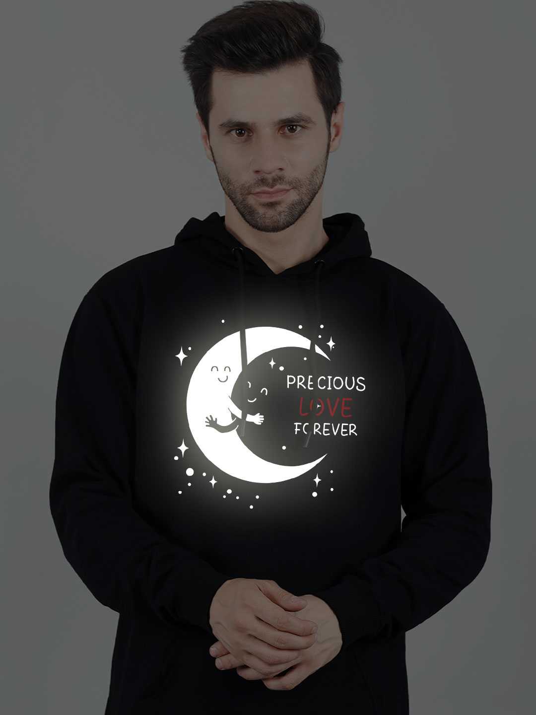 During light hits the print, Reflective Print reflect light. Best for Party wear and Highway or Road also in Night or Day. During Vehicle or other Light hits the Print. Hoodie Print will be visible white Glow