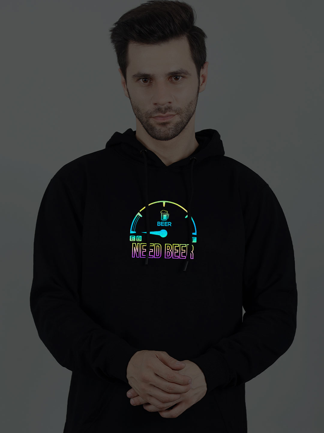 Rainbow Reflective Print reflect light, During light hits the print. Best for Party wear and Highway in Night or Day. During Vehicle Light Hits the Print. Hoodie will be Glow in Rainbow Effect