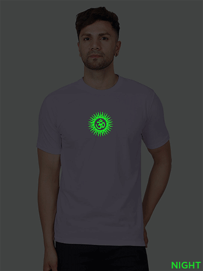 This T-shirt Print absorbs light during the day and emits it at night. The print on the T-shirt will also charge in sunlight or Tubelight and glow in the dark. The duration of the glow depends on the amount of light absorbed by the print