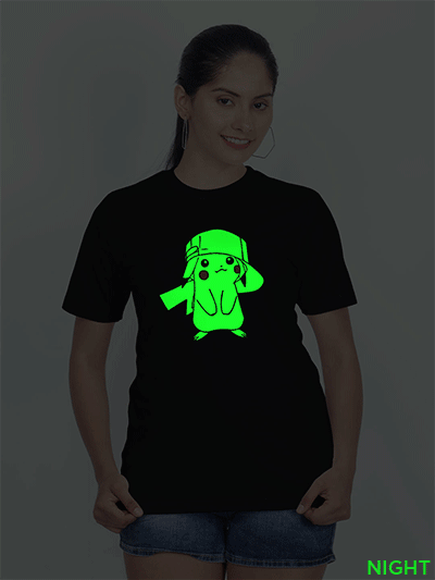 This T-shirt Print absorbs light during the day and emits it at night. The print on the T-shirt will also charge in sunlight or Tubelight and glow in the dark. The duration of the glow depends on the amount of light absorbed by the print