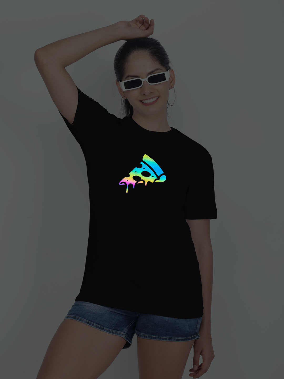 Pizza Slice Rainbow Reflective Women T-shirt