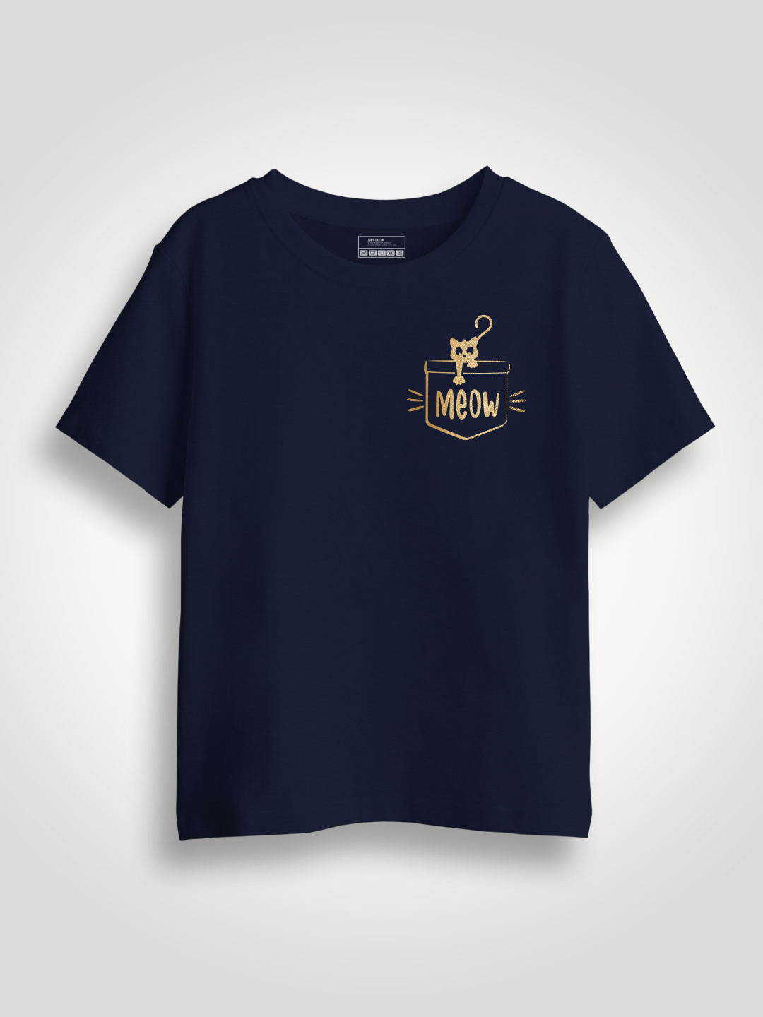 Pocket Meow Cat Gold Printed Kids T-shirt