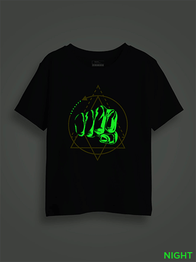 The glow-in-the-dark print on the Tshirt works similarly to radium. It absorbs light from any light source whether it’s sunlight, a tubelight, or artificial lighting and stores it. Once charged, the print will glow in the dark. Sunlight is particularly effective for charging, making the glow brighter and longer-lasting in the dark. Simply place the Tshirt in a well-lit area to activate the glow effect. For know more about this Print type You can can check out this post link Glow in dark Print or for Videos click here.?& for Customer’s Shared Photos or Our Gallery Pagespan>?