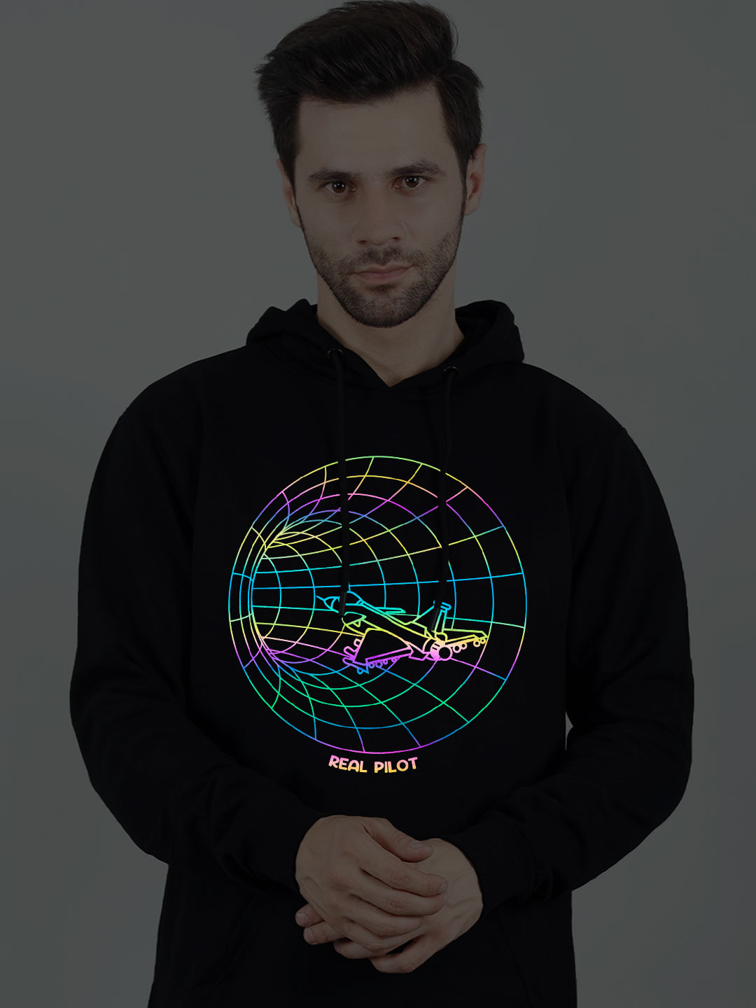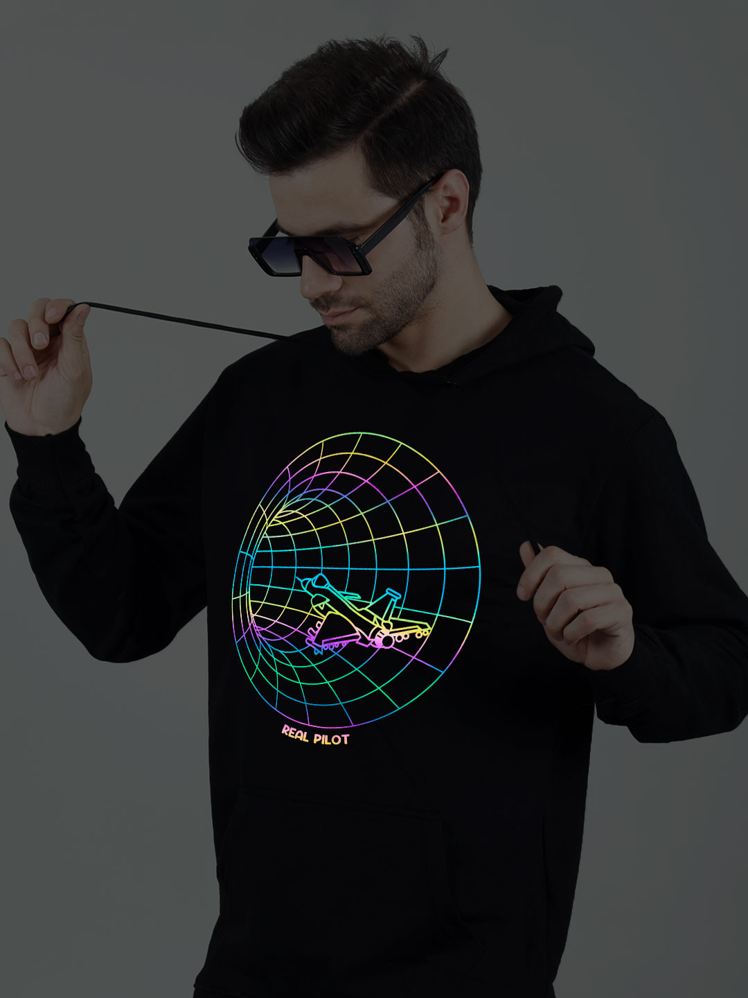 Real Pilot Rainbow Reflective Man Black Hoodie
