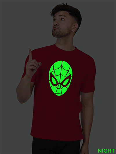 This T-shirt Print absorbs light during the day and emits it at night. The print on the T-shirt will also charge in sunlight or Tubelight and glow in the dark. The duration of the glow depends on the amount of light absorbed by the print