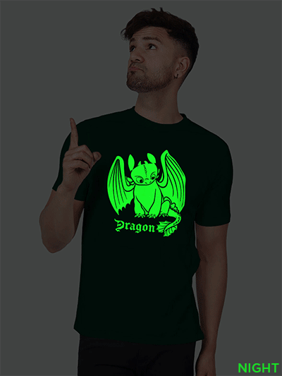 This T-shirt Print absorbs light during the day and emits it at night. The print on the T-shirt will also charge in sunlight or Tubelight and glow in the dark. The duration of the glow depends on the amount of light absorbed by the print