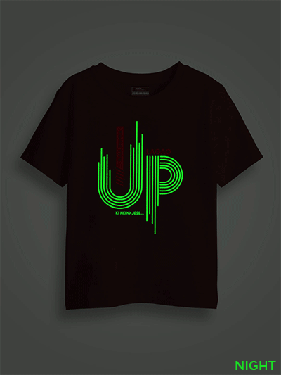 Order the Up Wala Thumka Lagao Kids Glow Tshirt today for a stylish, comfortable, and durable wardrobe essential.