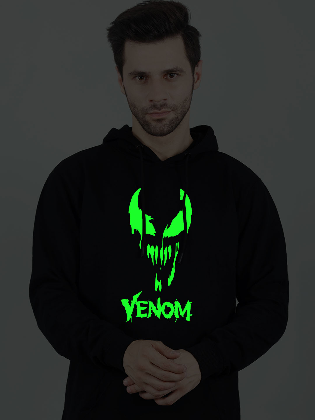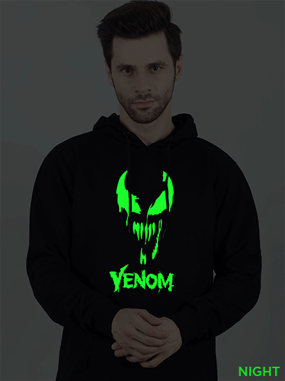 This Hoodie Print absorbs light during the day and emits it at night. The print on the Hoodie will also charge in sunlight or Tubelight and glow in the dark. The duration of the glow depends on the amount of light absorbed by the print