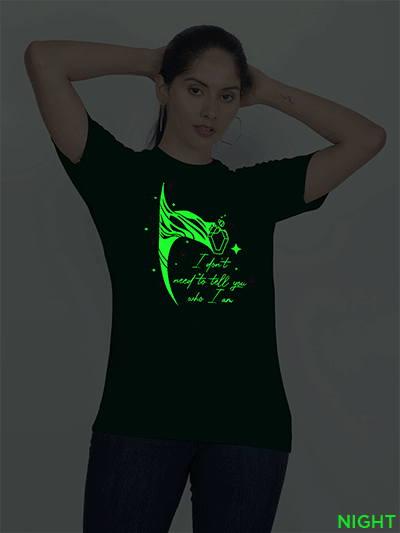 The Night Glow T-shirt features a unique print that absorbs light and creates a vibrant glow effect visible in the dark. It charges through exposure to light sources like sunlight, tubelights, or artificial lighting. After charging, the glow shines brightly in low-light settings, making the T-shirt both fun and functional. Whether you wear it for casual outings or evening adventures, this T-shirt ensures you catch attention effortlessly.