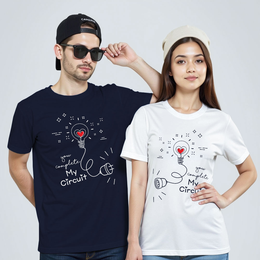 Celebrate your bond with the You Complete My Circuit Couple T-shirt featuring our vibrant Basic/Regular Print. Designed for lovebirds who enjoy standing out together, this eye-catching design fits every moment ? whether you’re out at a party, on a casual date, traveling, or just spending quality time.